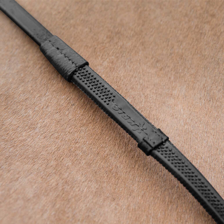 Dodane skórzane stopery zapewniają tym gumowym wodzom jeszcze większą przyczepność.