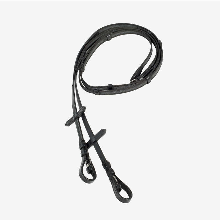 Trzymaj się mocno z tymi pięknymi, cienkimi, wąskimi wodzami pajęczymi z dużą przyczepnością i niewielką objętością. Te wąskie wodze są idealne, gdy nie chcesz, aby Twoja ręka była nieporęczna. Wodze wysokiej jakości ze skórzanymi stoperami mają ładną grubość 5/8 "z okuciami ze stali nierdzewnej.