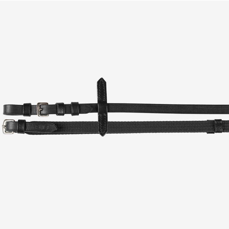 Wodze HORZE skórzane z taśmą parcianą ze stoperami czarne