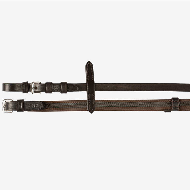 Wodze HORZE z taśmą gumowaną ze stoperami brązowe