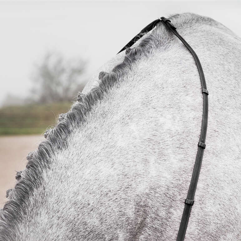 Wąskie, splecione wodze są pokryte lekkim gumowym uchwytem, który zapewnia kontrolę bez obciążenia.