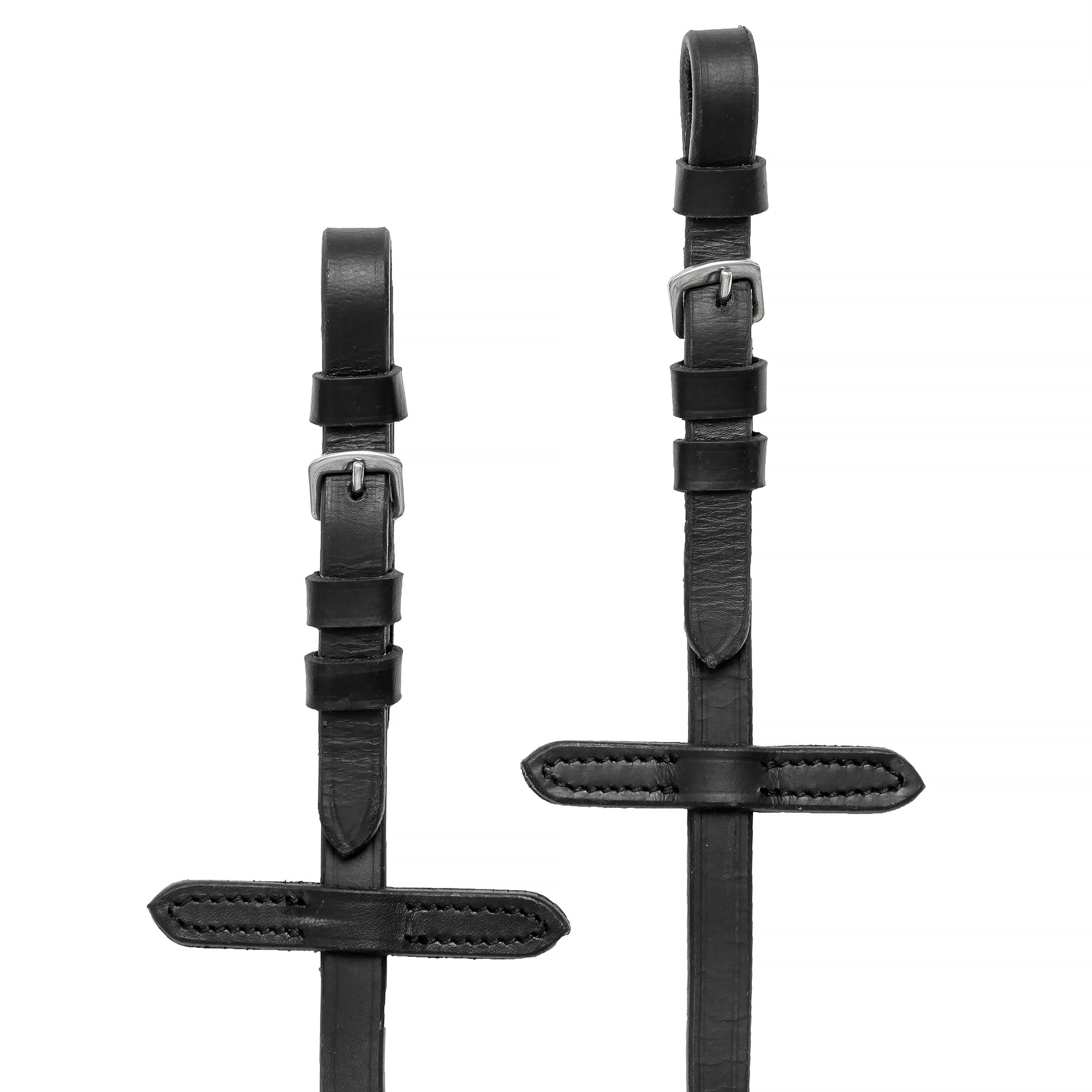 Skórzane końcówki oraz solidne sprzączki zapewniają trwałość i elegancki wygląd. Wodze posiadają stopery, które dodatkowo ułatwiają utrzymanie stałej długości kontaktu.