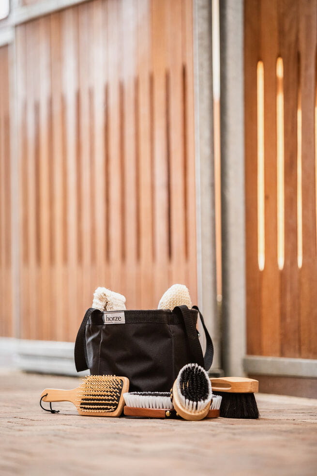 Zestaw HORZE do pielęgnacji drewniany czarny